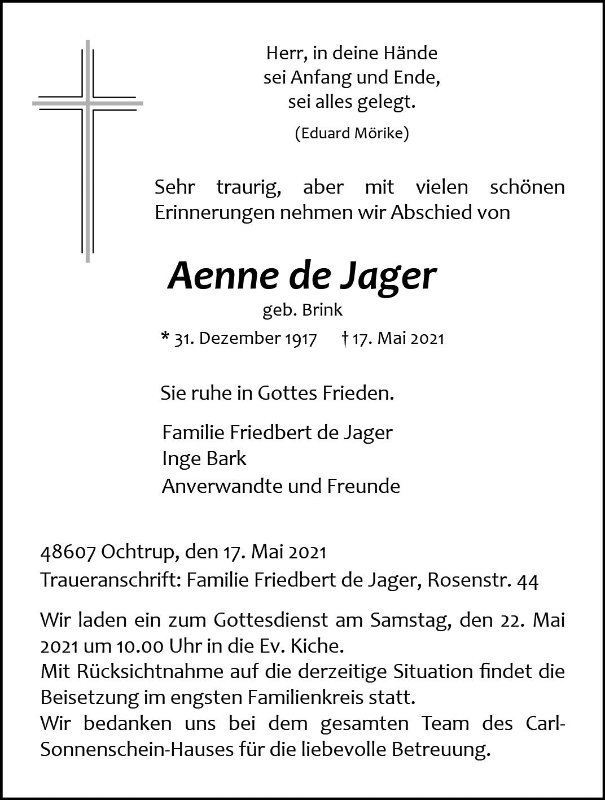 Aenne de Jager geb. Brink
